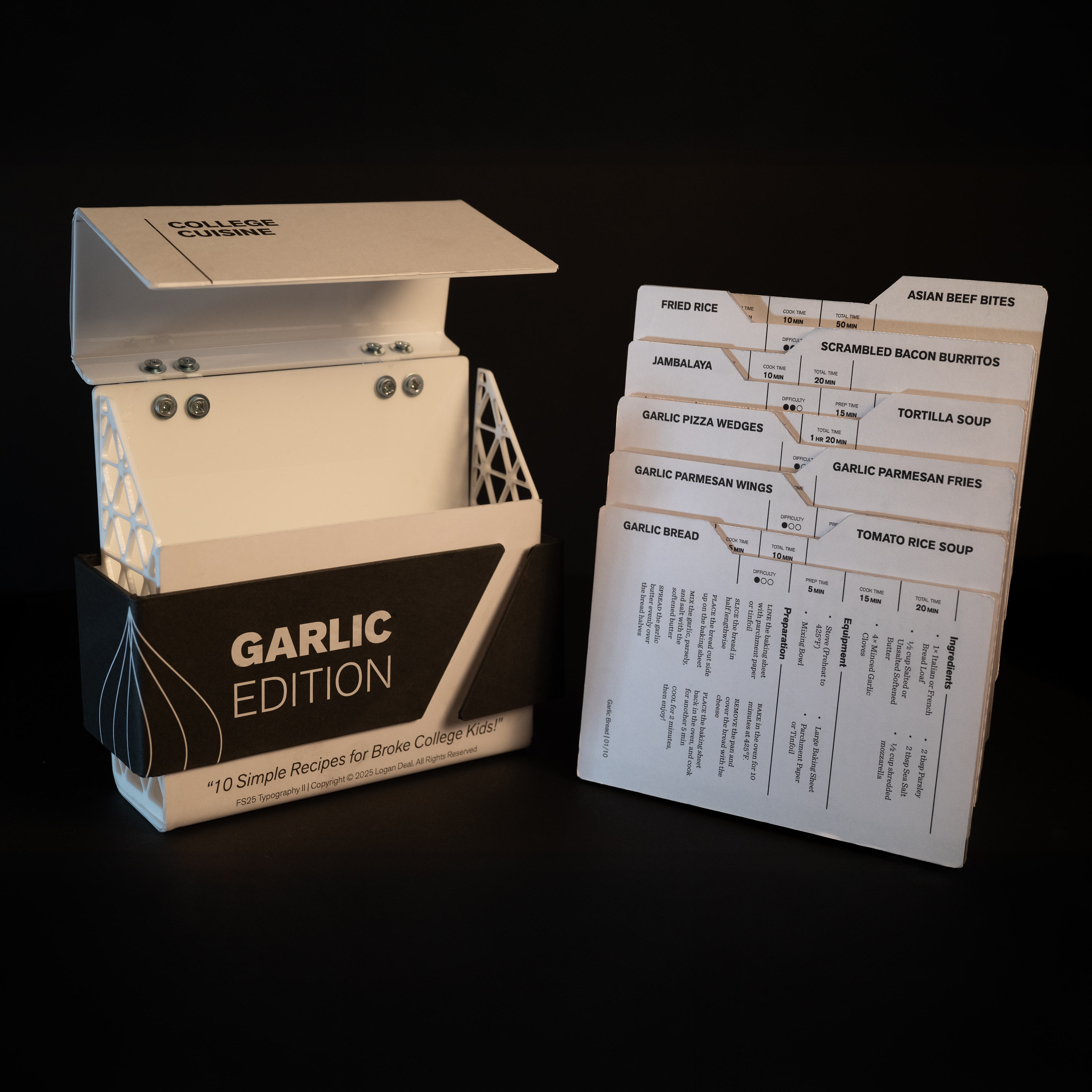 In developing my recipe cards, I identified a target demographic of college students like myself, and as such, adhered to the following hierarchy: